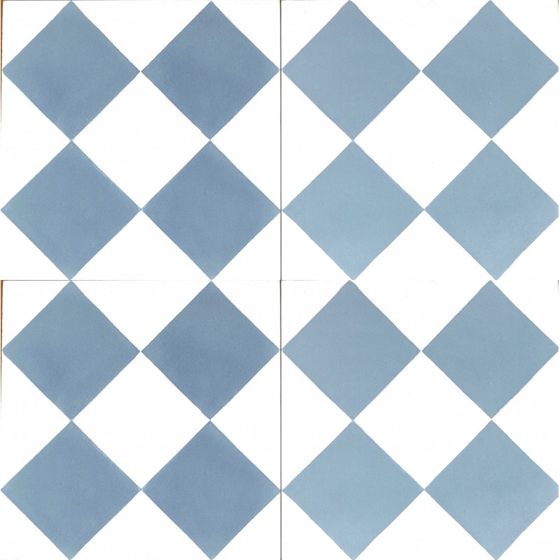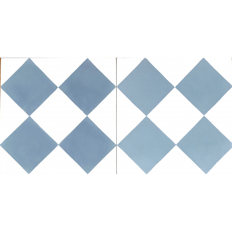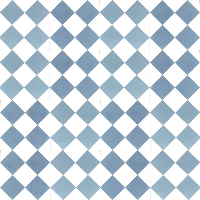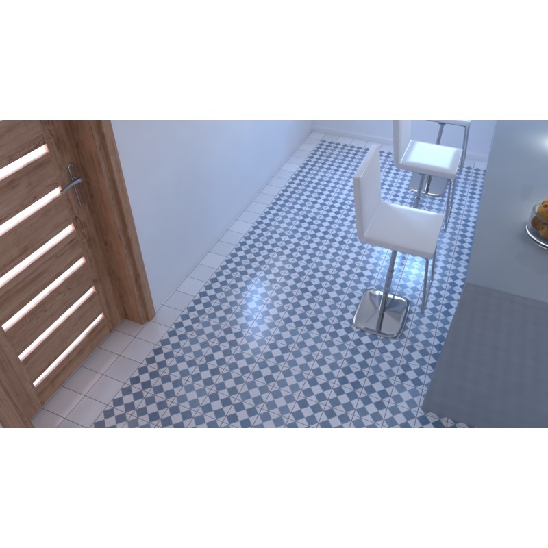 Design Zementfliese, portugiesischer Stil mit Quadratmuster, reinweiß/fernblau, 20x20 cm