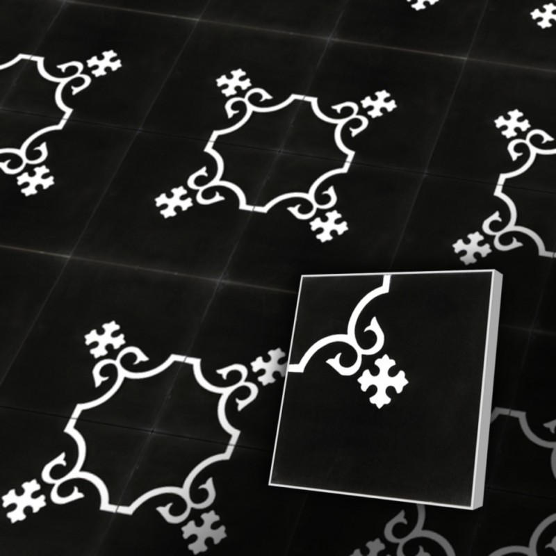 gemusterte Zementfliese in 2 bis 3 Farben - Bestellware in Wunschfarbe - einige Wochen Lieferzeit.