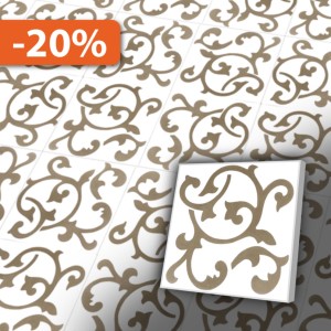 Aktionswochen!!! Nur noch 0 m² Antik Fliesen, Nostalgische Zementfliesen, Jugendstil mit Rankenmuster, reinweiß/moosgrau, 20x20 cm