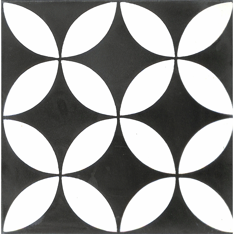 Zementfliese in Schwarz-Weiß 20x20 cm im Jugendstil - Design Q12-20X20-F2I-0061