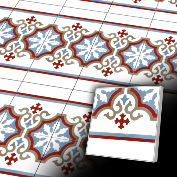 gemusterte Zementfliese in 4 bis 6 Farben- Bestellware in Wunschfarbe - einige Wochen Lieferzeit.
