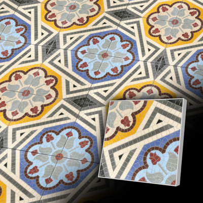 Zementfliese 4 bis 6 Farben, 17 x 17 cm, Bestellware in Wunschfarben - Einige Wochen Lieferzeit