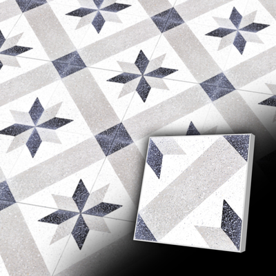 Antike Terazzoplatte im Format 20x20 cm mit 4er Sternenmuster - antiker Baustoff