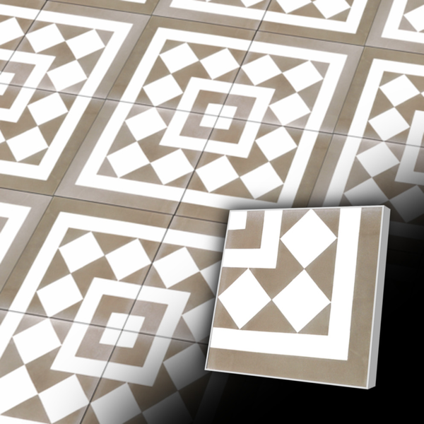 gemusterte Zementfliese in 2 bis 3 Farben - Bestellware in Wunschfarbe - einige Wochen Lieferzeit.