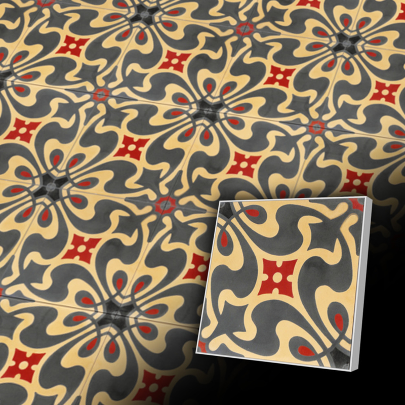 Zementfliese 20x20 cm in mediterranen Farben im orientalischem Stil - Bodenfliese