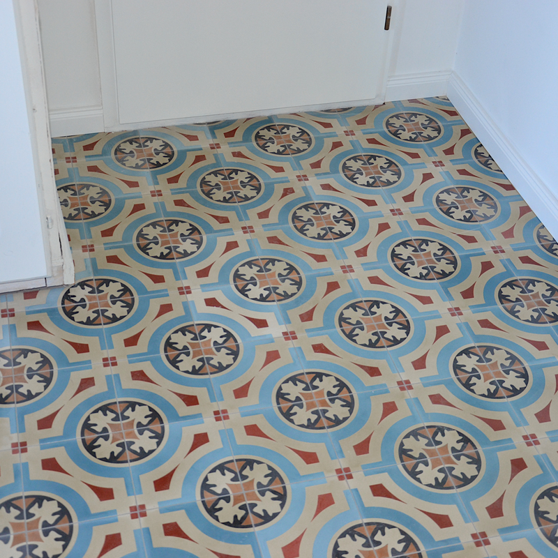 Marokkanische Zementfliese im Format 20x20 cm mit 4er Kreismuster - Design Q12-20X20-F5A-0307