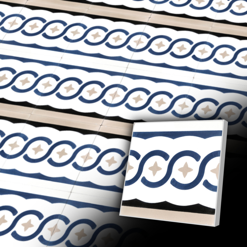 gemusterte Zementfliese in 2 bis 3 Farben - Bestellware in Wunschfarbe - einige Wochen Lieferzeit.