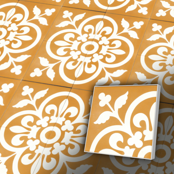 Gemusterte Zementfliese in 2 bis 3 Farben - Bestellware in Wunschfarbe - einige Wochen Lieferzeit.