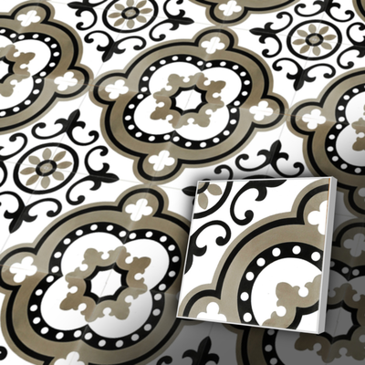 Gemusterte Zementfliese in 2 bis 3 Farben - Bestellware in Wunschfarbe - einige Wochen Lieferzeit.