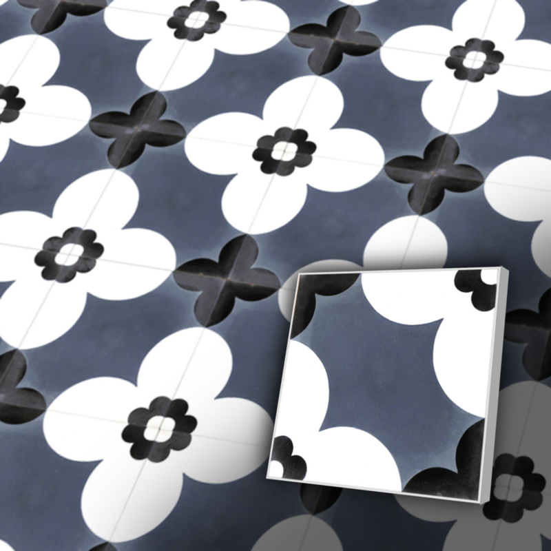 Gemusterte Zementfliese in 2 bis 3 Farben - Bestellware in Wunschfarbe - einige Wochen Lieferzeit.