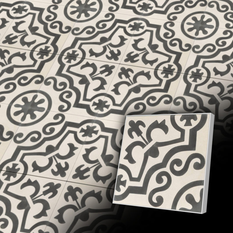 Gemusterte Zementfliese in 2 bis 3 Farben - Bestellware in Wunschfarbe - einige Wochen Lieferzeit.