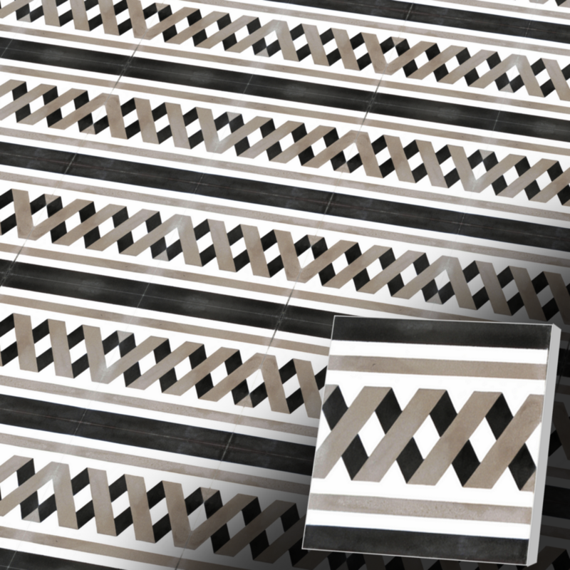 gemusterte Zementfliese in 2 bis 3 Farben - Bestellware in Wunschfarbe - einige Wochen Lieferzeit.