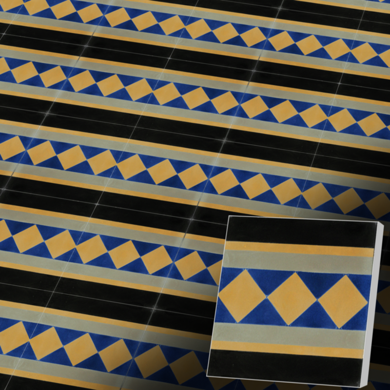 gemusterte Zementfliese in 2 bis 3 Farben - Bestellware in Wunschfarbe - einige Wochen Lieferzeit.